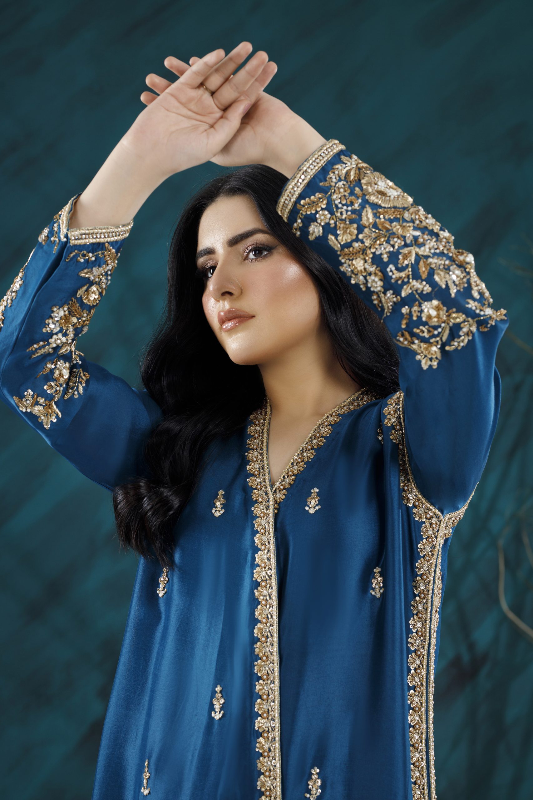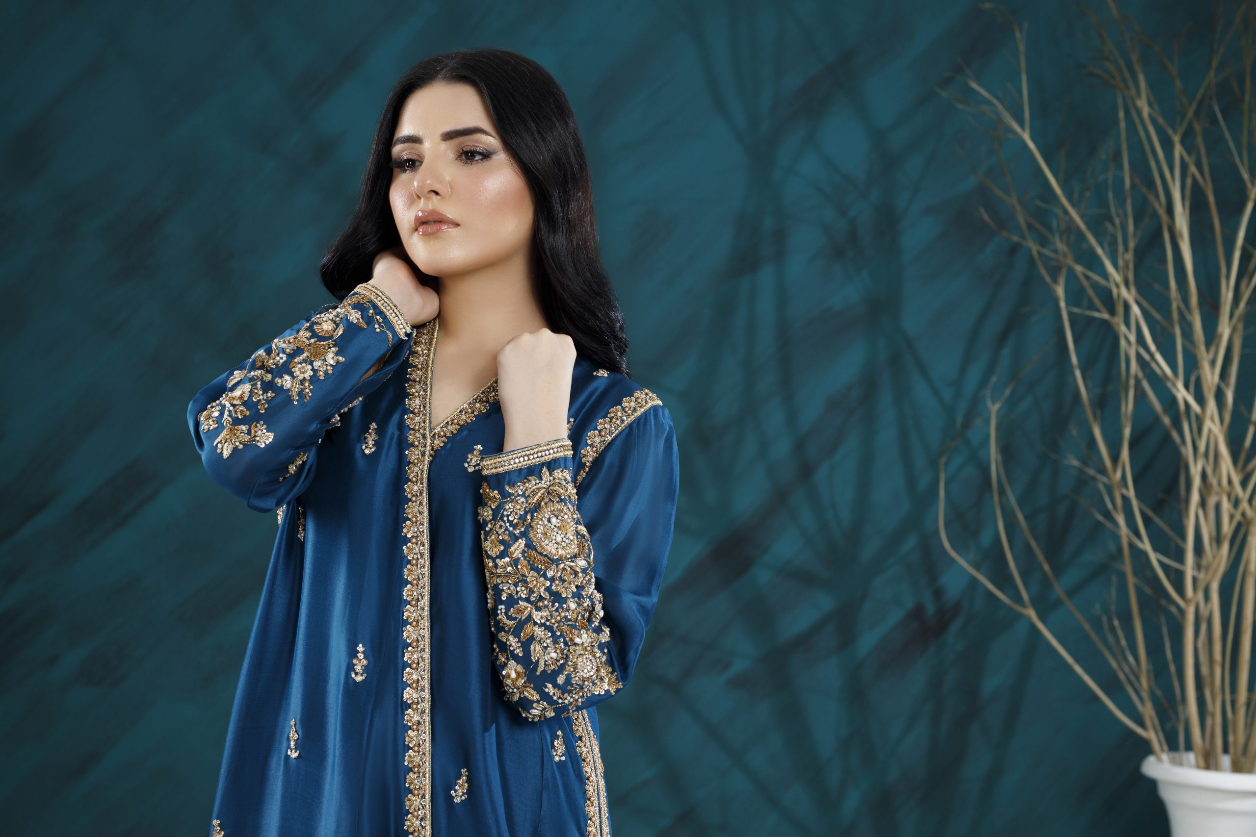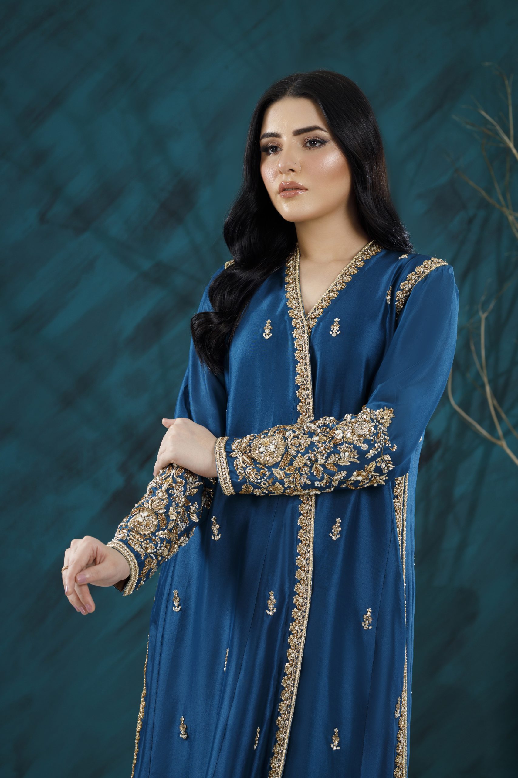 A refined formal ensemble featuring rich textures, elegant embellishments, and a flattering silhouette — perfect for weddings, festive gatherings, and special occasions.
