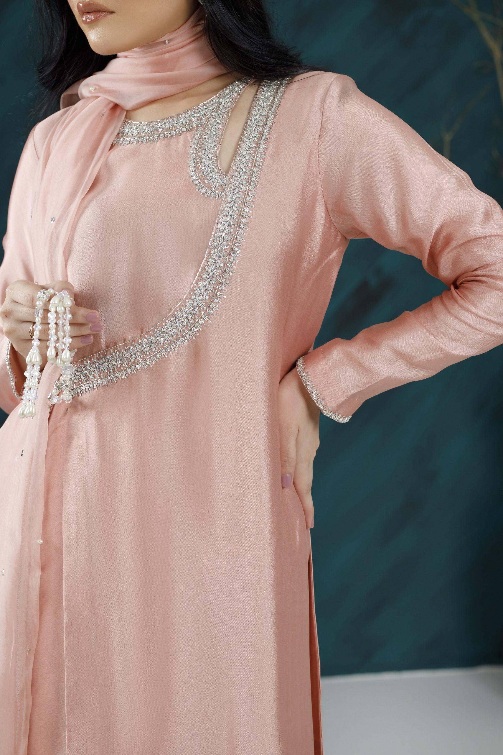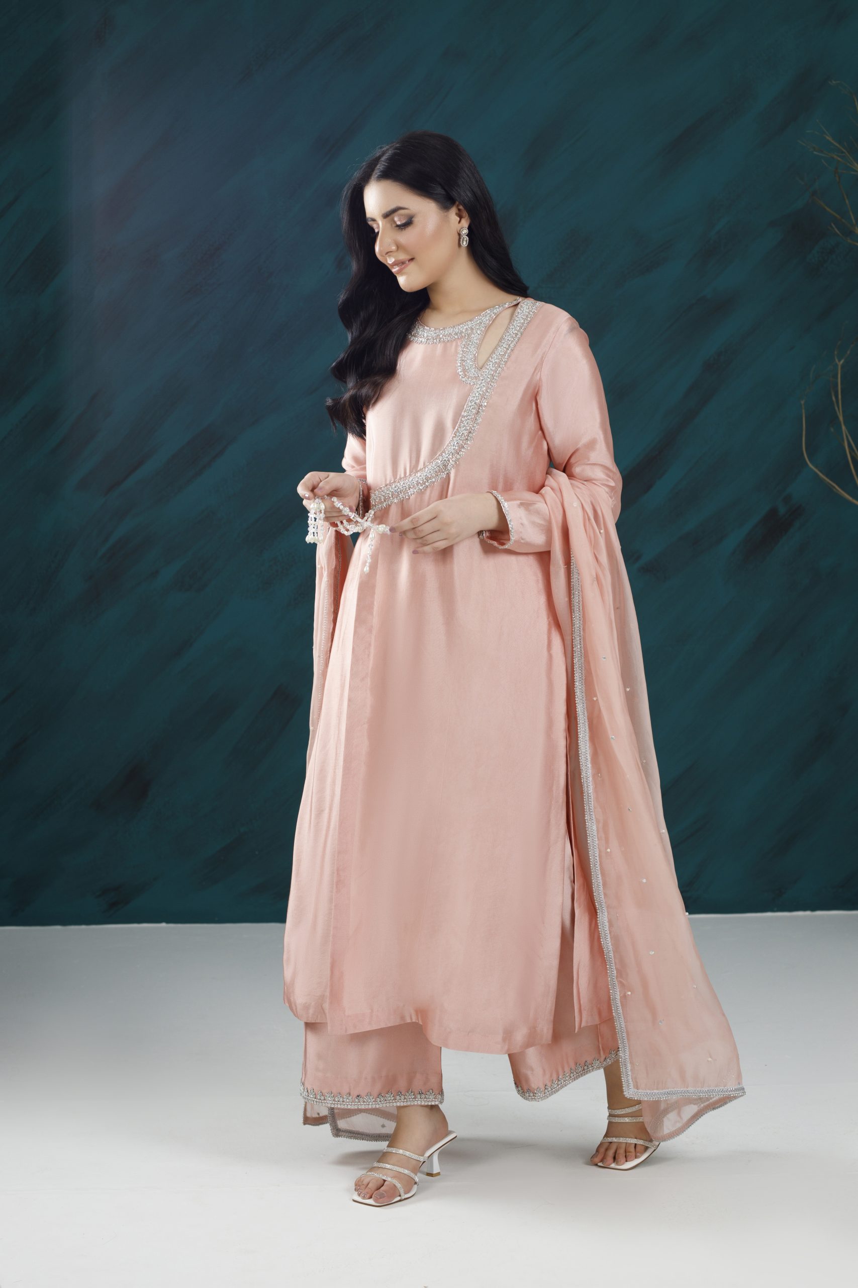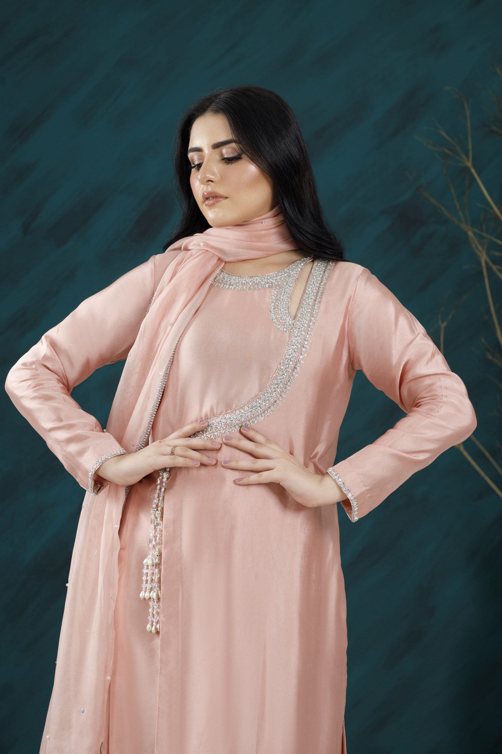 A refined formal ensemble featuring rich textures, elegant embellishments, and a flattering silhouette — perfect for weddings, festive gatherings, and special occasions.