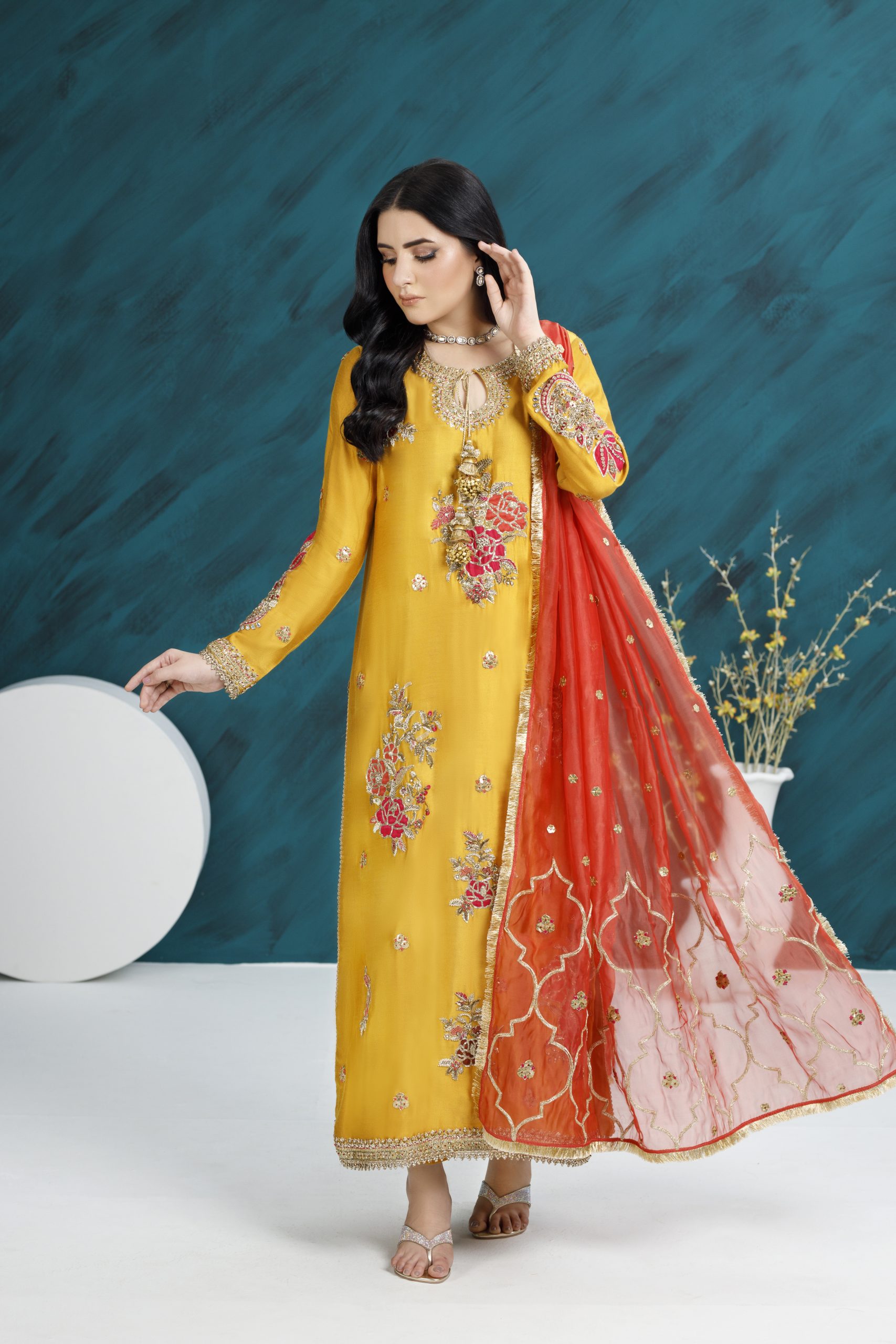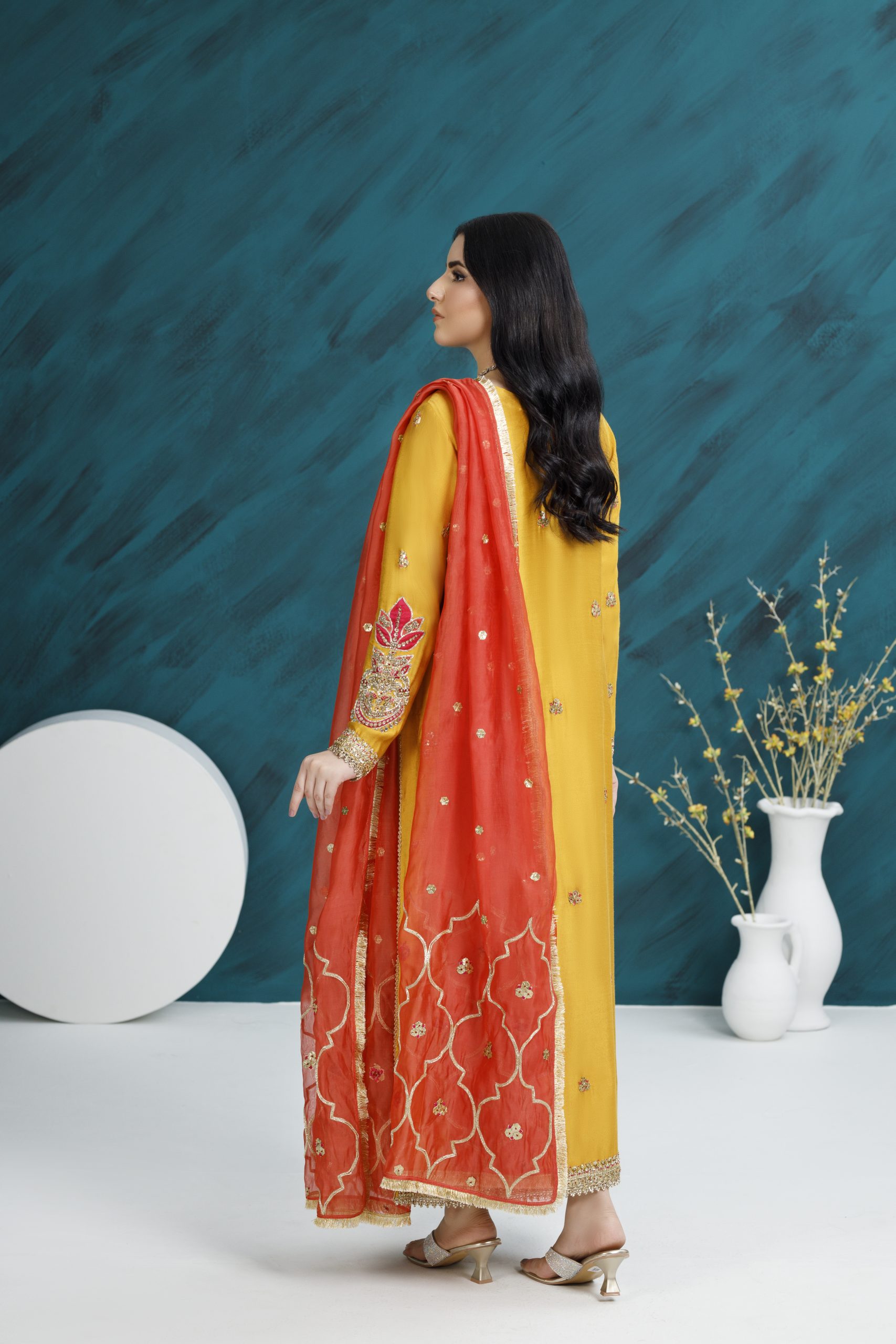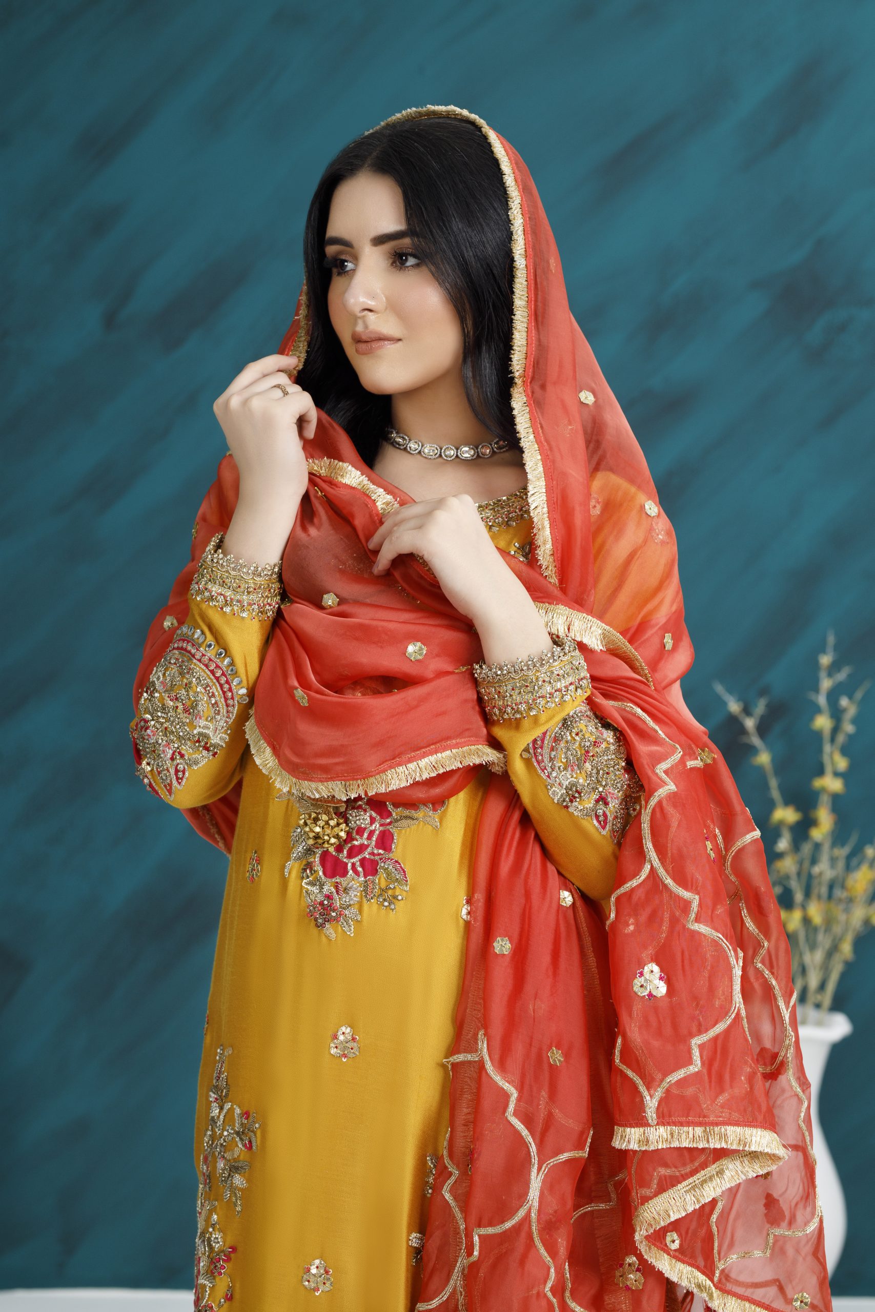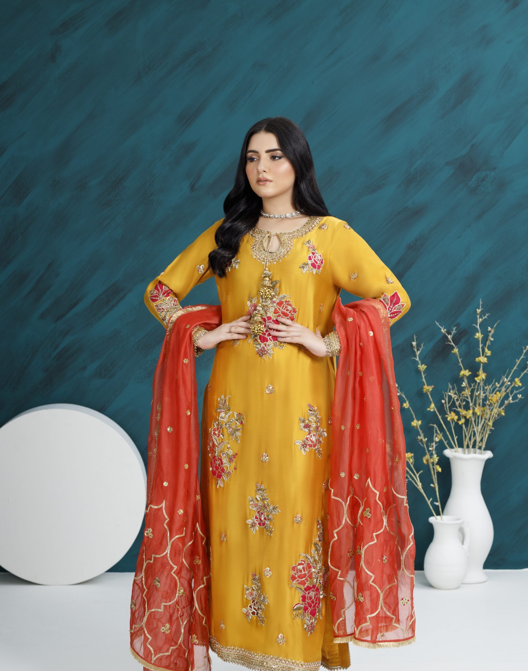 A refined formal ensemble featuring rich textures, elegant embellishments, and a flattering silhouette — perfect for weddings, festive gatherings, and special occasions.